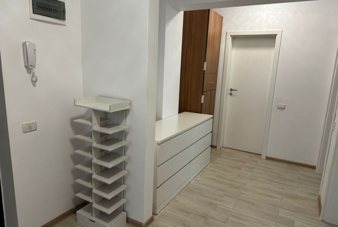 Locuința este amplasată la etajul 3 din 8 al unui imobil construit recent, cu lift și spații comune bine întreținute. Apartamentul are o compartimentare eficientă și practică, fiind compus din living generos, două dormitoare luminoase, bucătărie separată, două băi și balcon. Configurația decomandată oferă intimitate și confort, fiind ideală pentru o familie sau pentru investiție.